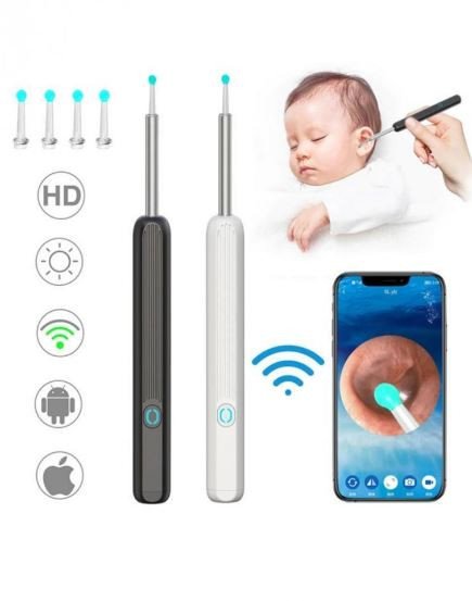 جهاز تنظيف الاذن الذكي مزود بكاميرا عالية الوضوح HD ويمكنك التحكم فيها عبر الجوال من خلال التطبيق المخصص بها وتحتوي على 3 رؤوس بأحجام مختلفة وتقنية واي فاي للربط مع الجهاز.