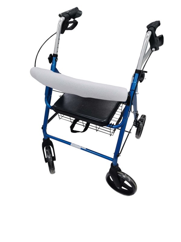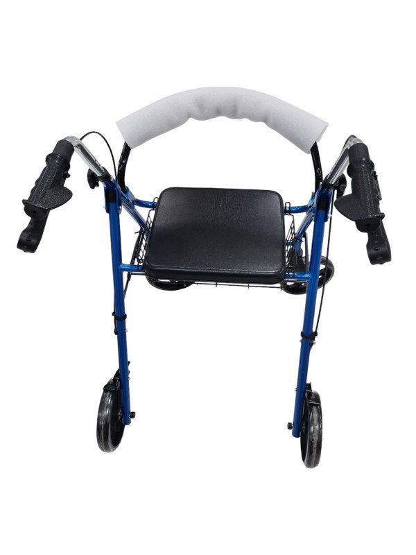 مشاية مع أربع عجلات ومقعد للمساعدة على المشي قابلة للطي مما يسهل التنقل والسفر المشاية مزودة بفرامل يدوية مع نظام قفل تم تزويد المشاية بمقعد وساند ظهر مبطنين وتوجد سلة للتسوق قابلة للإزالة والمشاية مع المقعد مناسبة للتنقل والتسوق.