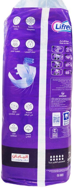 ليفري كِلوت رقيق حفاضات لكبار السن تتميز بالمرونة العالية والامتصاص والنعومة لراحة كبار السن بنسبة 100 %وتمتص حتى 3 أكواب من الماء بدون تسرب.