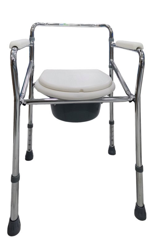 الهيكل الرئيسي مصنوع من الفولاذ المتين المطلي بالبودرة والمقعد مصنوع من مادة بلاستيكية وتسمح لك مساند الذراعين بالحفاظ على التوازن أثناء الوقوف والجلوس ويجعل التصميم القابل للطي.