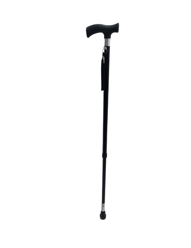 عصا معدنية للمشي، توفر دعمًا وثباتًا أثناء المشي.