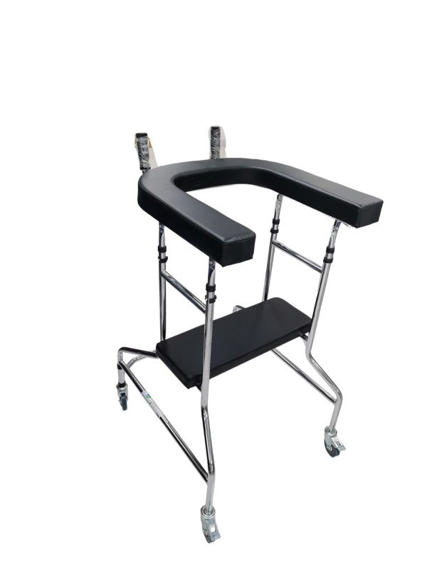 مشاية للكبار بإطار معدني من الفولاذ المقاوم للصدأ.· المشاية مزودة بدعامة مبطنة للصدر لمزيد من الحماية.