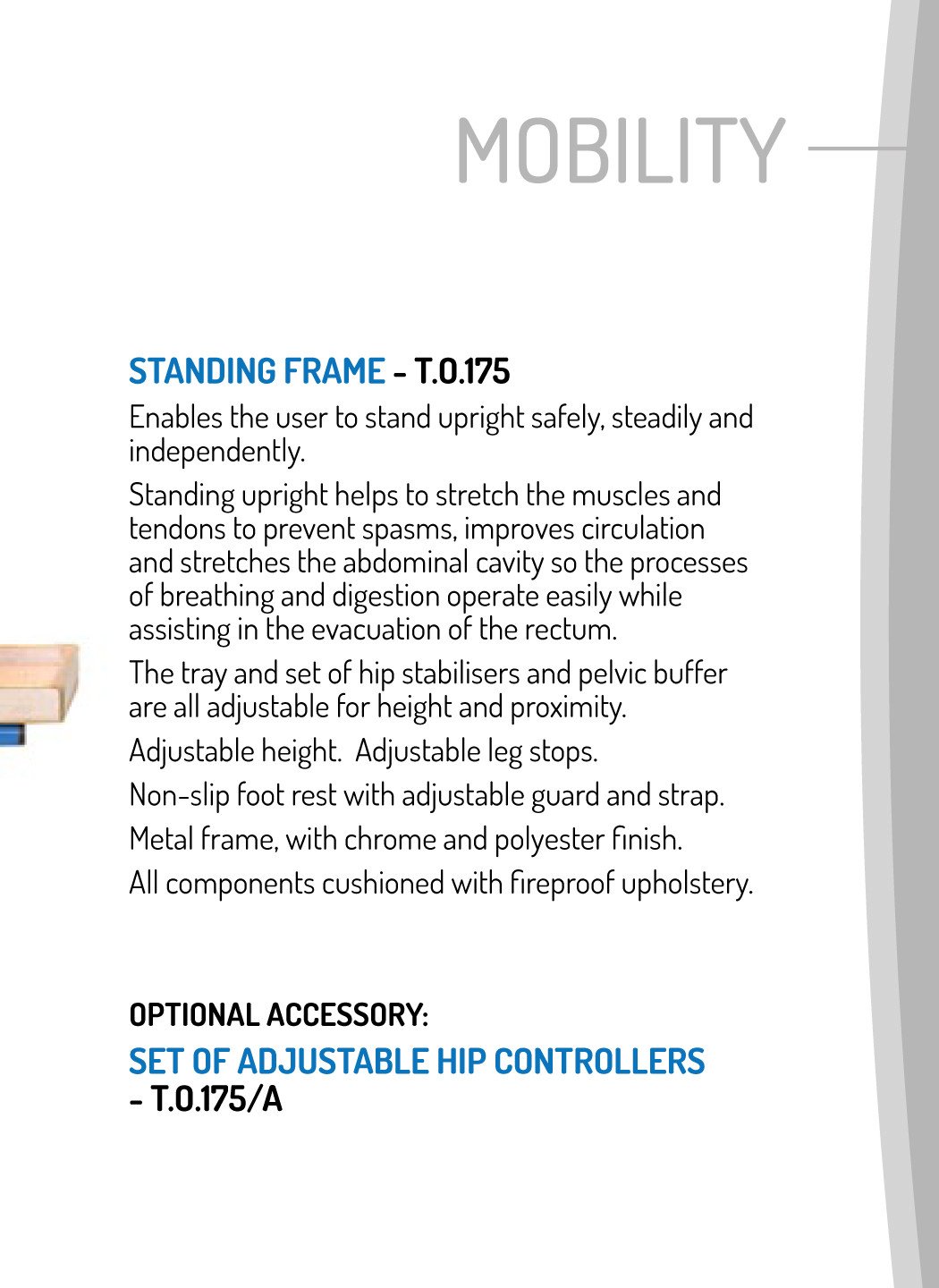 • إطار قائم - T.0.175 يتيح للمستخدم الوقوف بشكل مستقيم بشكل آمن وثابت ومستقل.