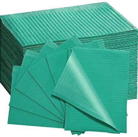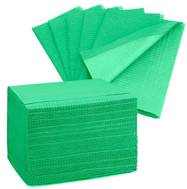 Patient Bibs, 2 Ply Paper + 1 Ply Poly, 6.5 gram, Green - 125PCs Per Bag - 4Bags Per Case