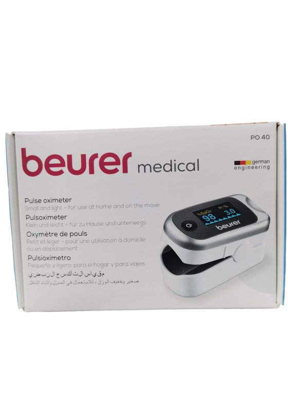 جهاز يقيس نسبة الأوكسجين بالدم كما يقيس ضربات القلب الجهاز صغير و يسهل حمله لأي مكان يمكن استعماله بالمستشفيات أو المنازل.