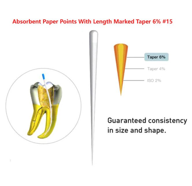 Absorbent Paper Points With Length Marked Taper 6% #15