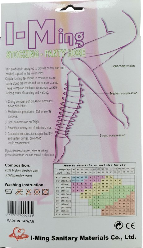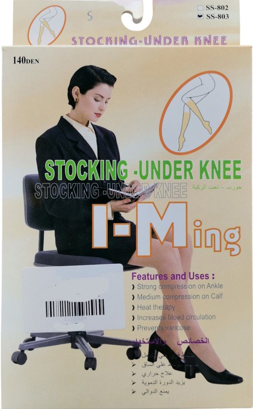 يستخدم الجوارب الضاغطة لدعم الجهازين الوريدي واللمفاوي في الساق وتحقق أقصى ضغط في الكاحل ويقل في الأجزاء الأعلى من الساق و فوق الركبة.