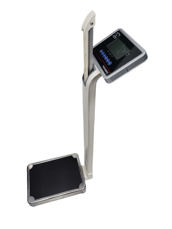 ميزان الكتروني بسعة 200 كجم مع مقياس الطول لقياس الوزن والطول بدقة.